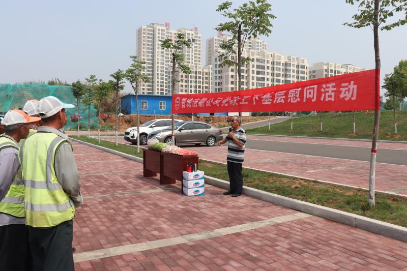 帶狀公園位于晉城市東南新區(qū),目前有我公司員工52人,分保安、保潔和綠化養(yǎng)護三個隊組。車一到公園,慰問小組工作人員就打開音響放起歌來,一下就把員工從緊張勞累的工作狀態(tài)帶入輕松的氛圍。一聲“大家辛苦了”,工作人員向公園員工致以親切的問候,把黨政工領(lǐng)導的關(guān)懷送到了員工的心坎上。