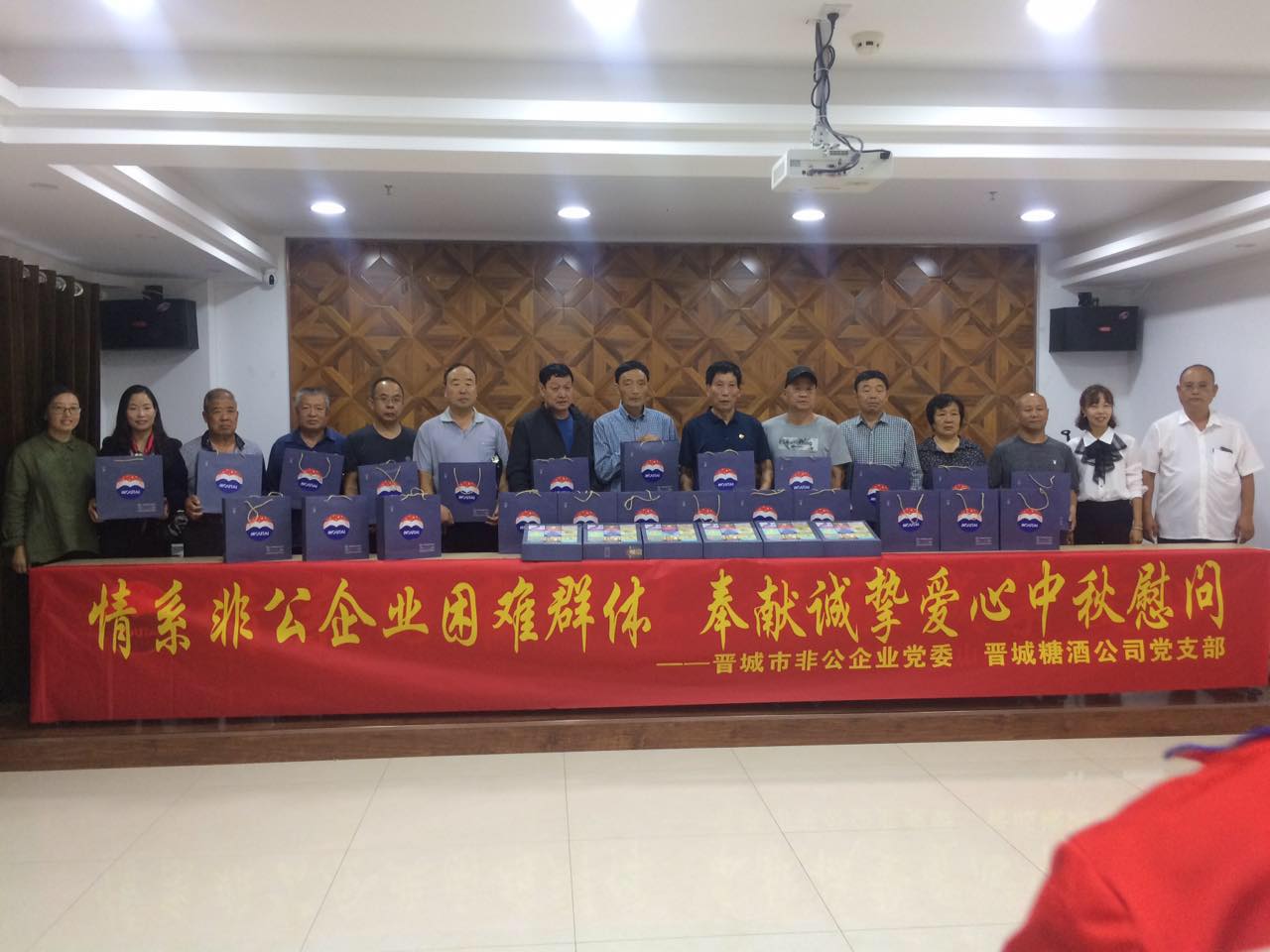 9月11日上午,秋雨連綿。值此中秋佳節(jié)來臨之際,晉城市非公企業(yè)黨委聯(lián)合晉城糖酒公司黨支部、貴州茅臺山西省晉城糖酒專賣店“情系困難群體、奉獻(xiàn)誠摯愛心”中秋慰問活動在潔霸公司舉行。