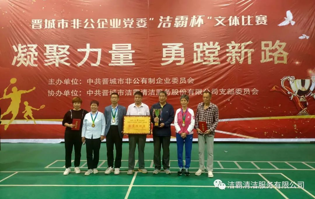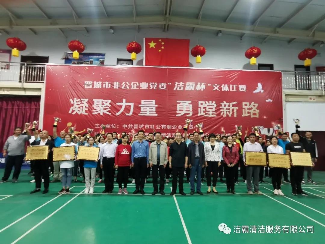 9月25日下午,晉城市非公企業(yè)黨委“潔霸杯”文體比賽落下帷幕。此次比賽由中共晉城市非公有制企業(yè)委員會(huì)主辦,中共晉城市潔霸清潔服務(wù)股份有限公司支部委員會(huì)冠名協(xié)辦。此次活動(dòng)的主題是“凝聚力量 勇蹚新路”,旨在新中國成立71周年之際,全面展示非公企業(yè)黨組織開展群眾性體育活動(dòng)的豐碩成果,以及廣大黨員干部創(chuàng)先爭優(yōu),奮發(fā)進(jìn)取,勇蹚新路,爭做時(shí)代先鋒的精神風(fēng)貌。