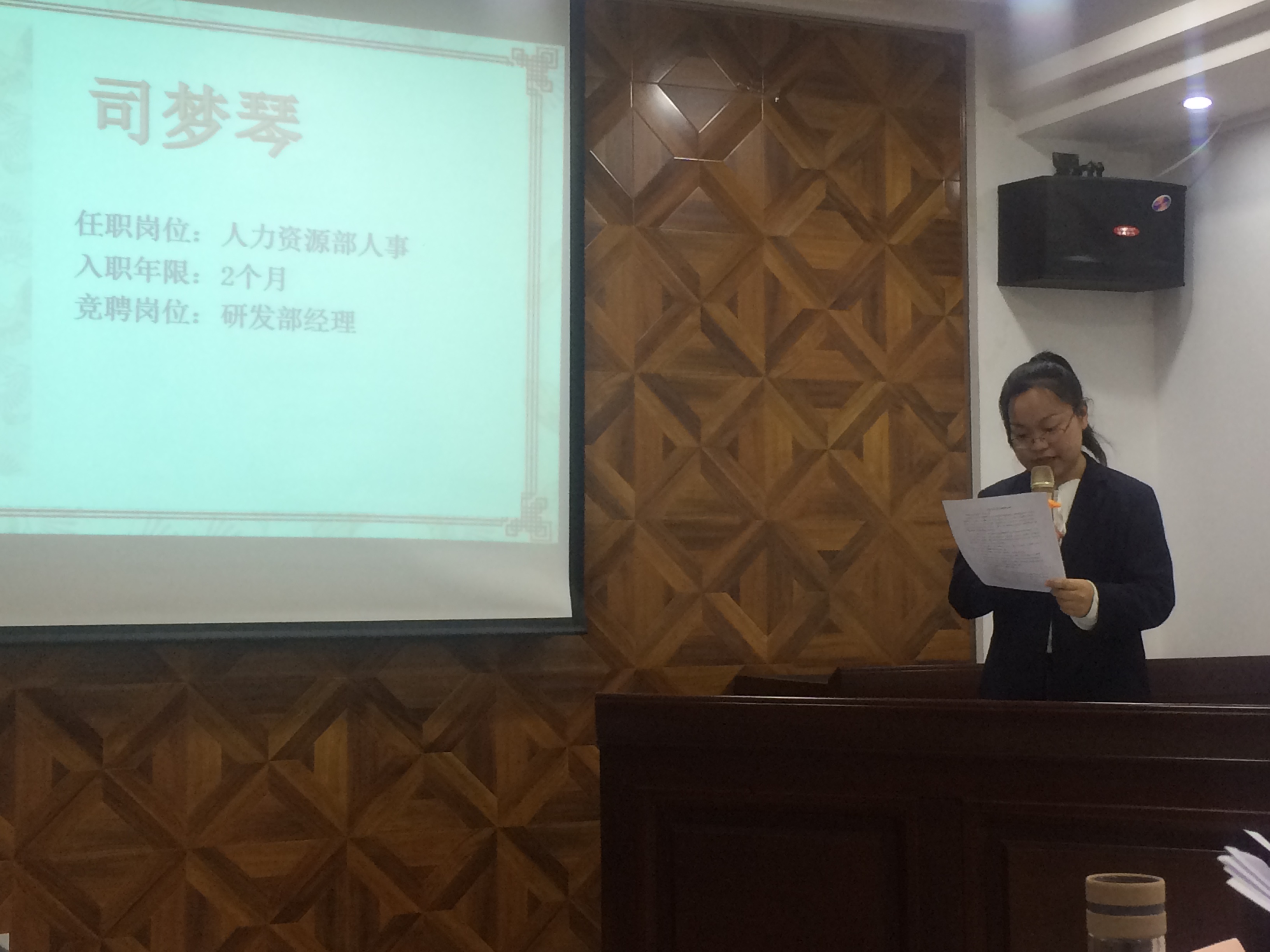 通過層層篩選,參加本次競聘者共有14人,分別競聘綜合辦公室主任、太原分公司經(jīng)理、人力資源部經(jīng)理等五個(gè)崗位,競聘者既有摸爬滾打20多年的老員工,又有入職不到半年的大學(xué)生;既有中層崗位上的管理者,又有從太原、晉中等地趕來的競聘者。競聘演講、預(yù)設(shè)提問、評委點(diǎn)評、計(jì)算機(jī)實(shí)操等環(huán)節(jié)環(huán)環(huán)緊扣,競聘者演講的精彩,評委點(diǎn)評的到位,個(gè)個(gè)精彩,人人優(yōu)秀。公司經(jīng)理程晉軍說:“本次競聘工作結(jié)束后,將有一批德才兼?zhèn)涞膯T工走上管理崗位,今后也將會有多場的競聘活動(dòng),進(jìn)一步優(yōu)化用人機(jī)制,激發(fā)員工的工作積極性!