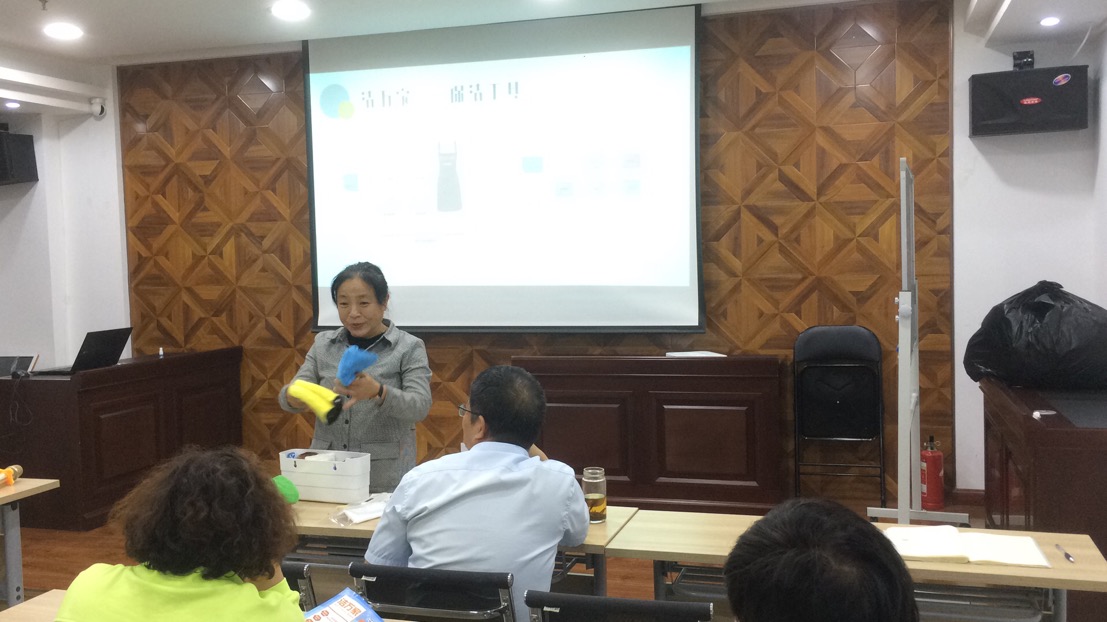 會(huì)議開場(chǎng),從福建福州取經(jīng)回來(lái)的人力資源部呂利清用簡(jiǎn)短的一句話首先點(diǎn)出了“潔萬(wàn)家”產(chǎn)品的亮點(diǎn)——“1人1次4小時(shí)日常保潔服務(wù)”,接著她從服務(wù)人員、服務(wù)時(shí)間、服務(wù)內(nèi)容、保潔工具、保潔流程等方面介紹了“潔萬(wàn)家”日常保潔與年關(guān)保潔以及居家保潔的區(qū)別,并對(duì)服務(wù)內(nèi)容所涵蓋的6大區(qū)域(臥室、衛(wèi)生間、餐廳、客廳、廚房、陽(yáng)臺(tái))以及專用8色保潔布的分類使用進(jìn)行了詳細(xì)的介紹。