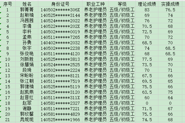 202491日第35批養(yǎng)老護理員初級認(rèn)定人員成績公示