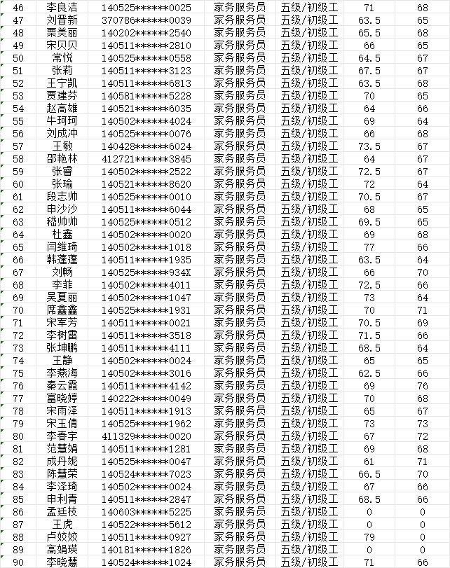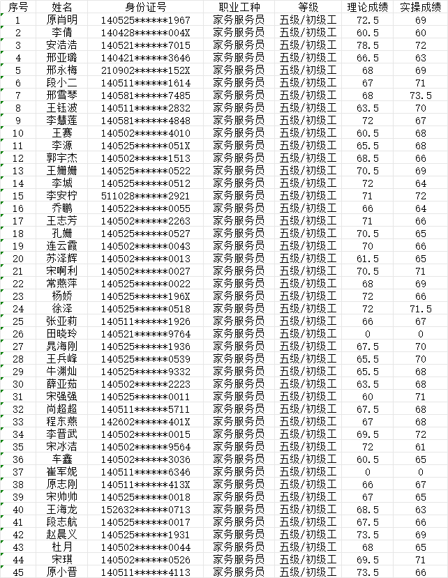 2024年9月28日第40批家政服務員初級認定人員成績公示